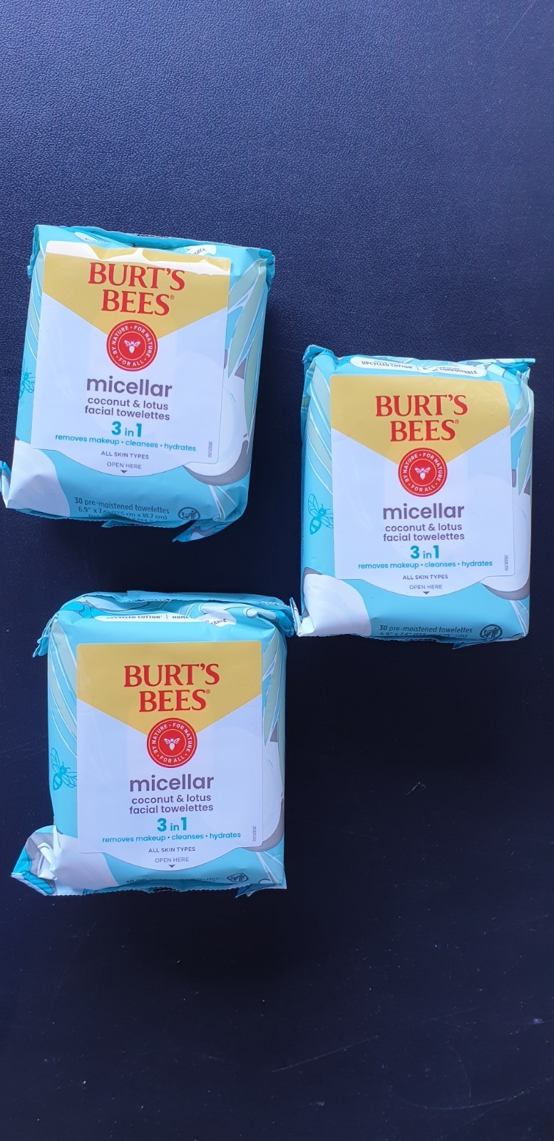 - 3x Burt's Bees 3-in-1 Micellar Facial Towelettes Coconut & Lotus water 30-Count