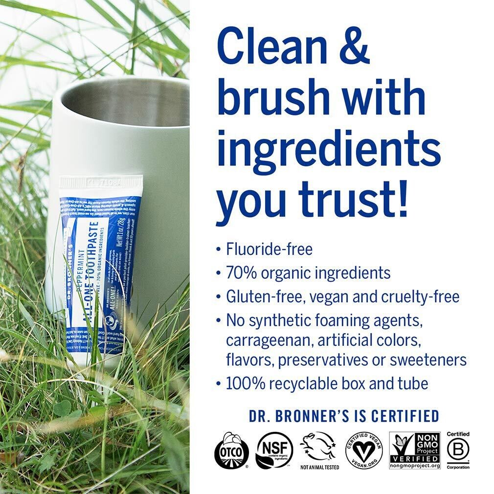 - 3x Dr. Bronner’s - All-One Toothpaste Peppermint, 1 Ounce Whiten Teeth, Vegan