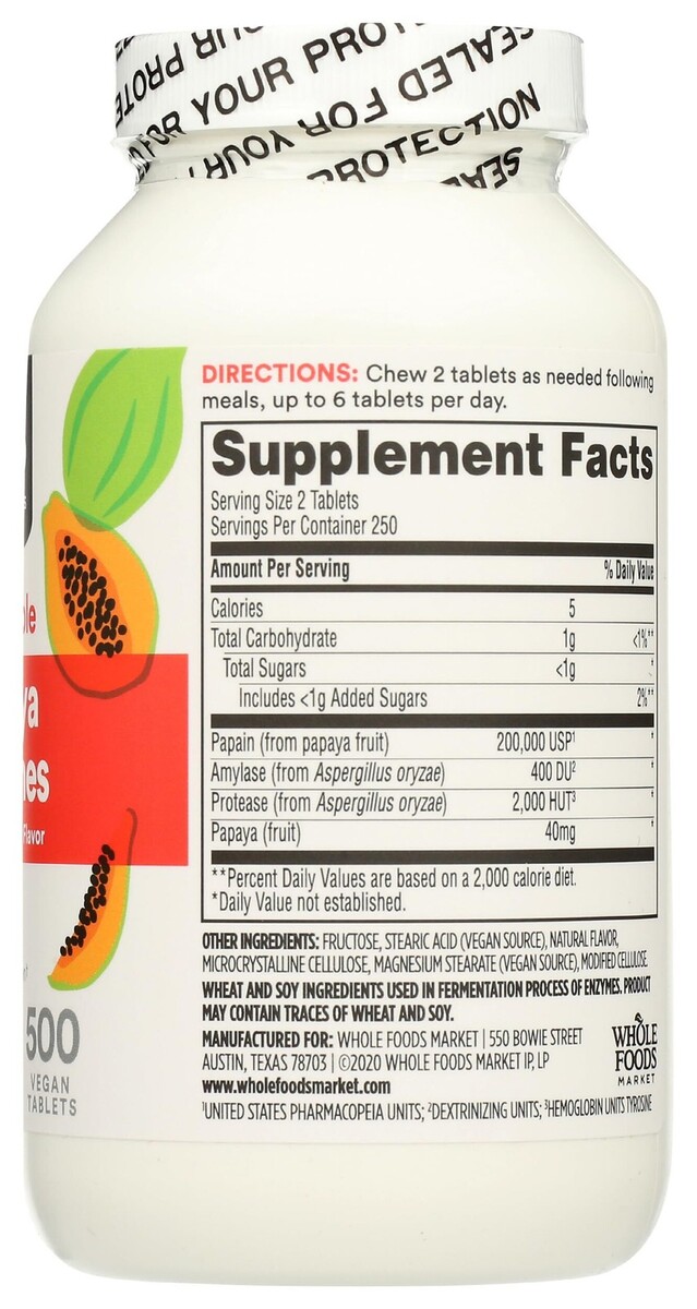 - 4/2027 365 by Whole Foods Market, Papaya Enzymes, 500 Chews