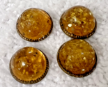 - 4 Antique Amber Glitter Lucite Dome Buttons 9/16ths Inch Across
