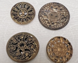 - 4 Antique Metal Buttons Open Circle and Star Designs w Flasher Silver Background