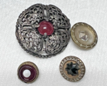 4 Antique Round Metal Dress Buttons w Glass Center Or Cut Steel 3/8 - 1 1/4"