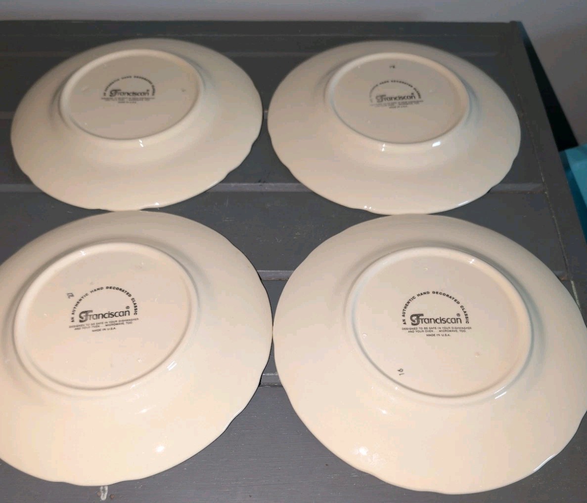 - 4 - Beautiful Franciscan Meadow Rose 8" Salad Plates Hand Decorated