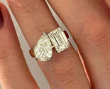 - 4 Carat E VVS2 Toi et Moi Emerald and Pear Cut Lab Grown 2 Stone Diamond Ring