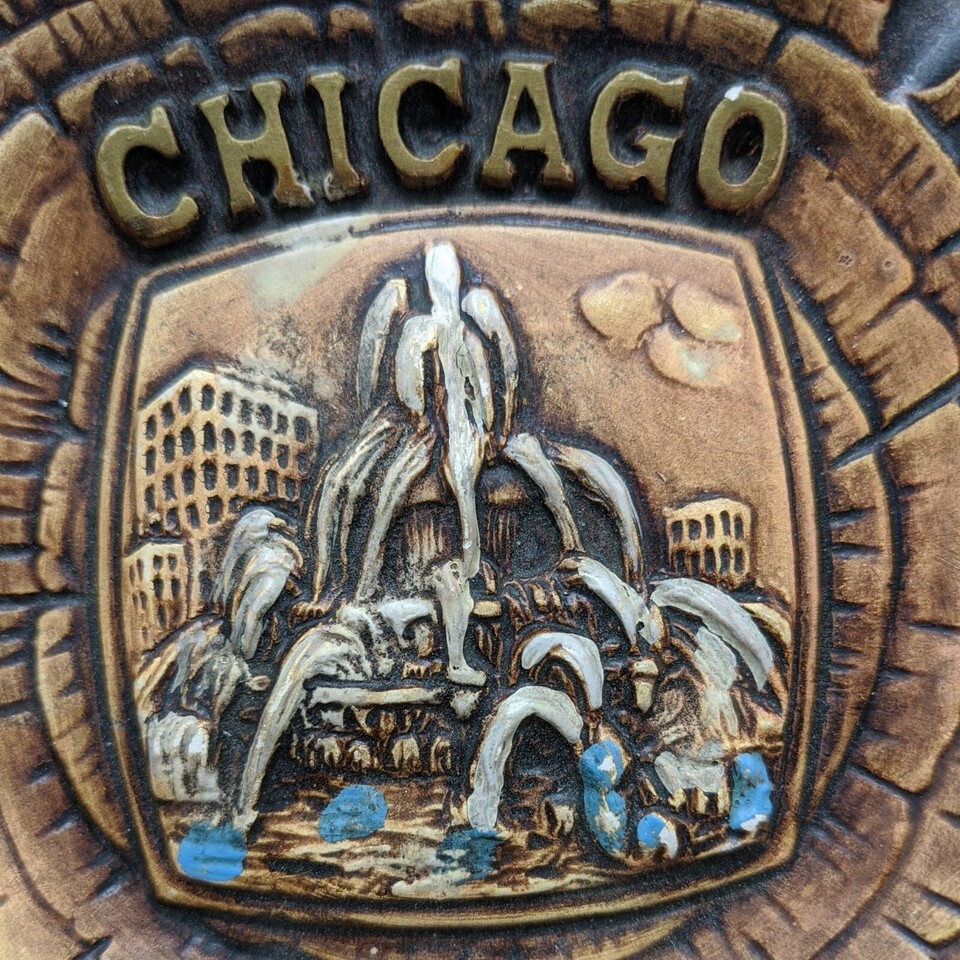 - 4" Chicago Clarence Buckingham Memorial Fountain Ash Tray Ceramic Illinois