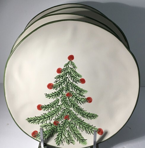- 4 Dinner Plates Eli + Ana Handmade Ceramic Christmas Tree Erma 10.75” New
