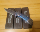 - 4 - ElitEdge Damascus Blade Blue Stainless Handle A/O Folding Knife - 10-A54BLD