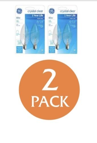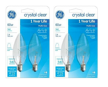 - 4 GE 60w Decorative B Type Candelabra Base Bulb 540 Lumen Crystal Clear 2-2packs