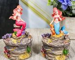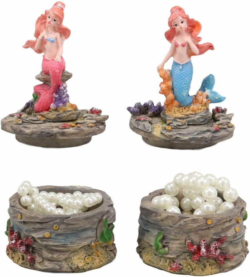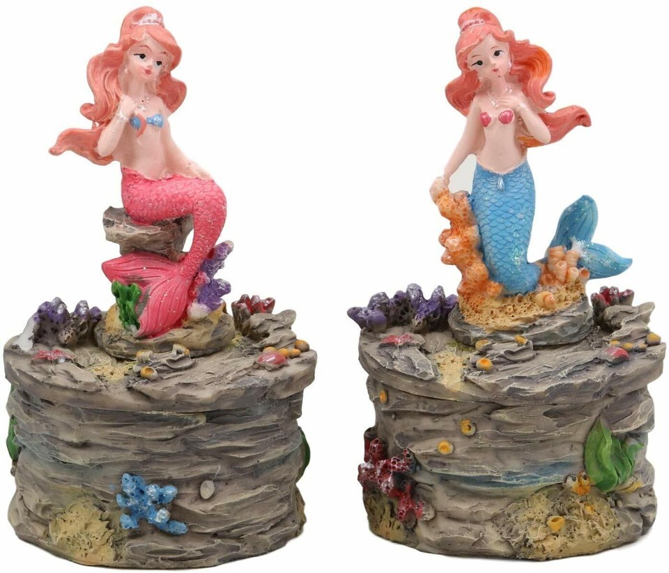 Ebros 4"H Blue And Pink Tail Mermaid Mergirls On Corals Decorative Box Set Of 2