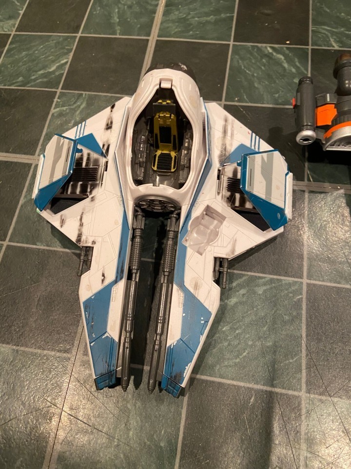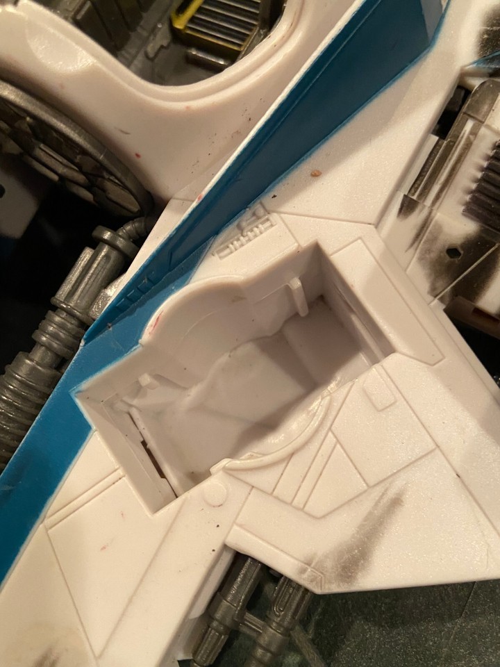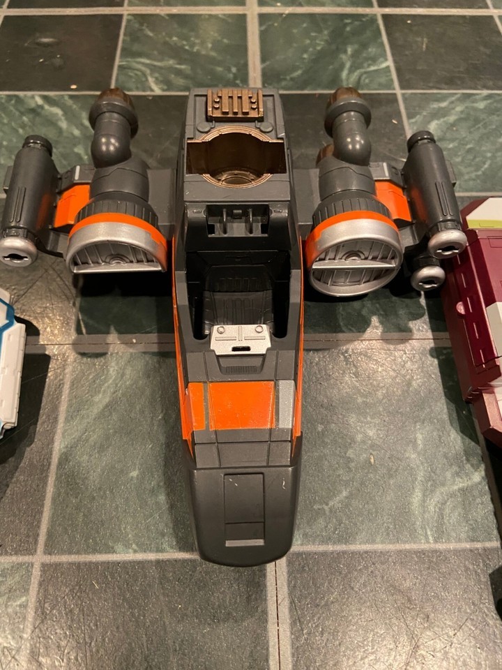 The Star Wars Jedi Force vehicles are all missing the cockpit hatch doors. There are no missiles in the The X-Wing and it's missing the left side engine booster on the bottom.