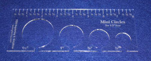 4 Mini Circles in 1 Template. 1 1/2", 1", 3/4", 1/2" - These are the final stitch sizes if using a 1/2" Foot. Holes overall actual size are 1/2" Larger