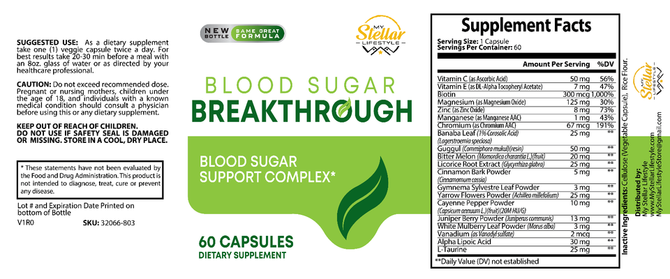4 Pack Blood Sugar Breakthrough, blood sugar support-60 Capsules x4