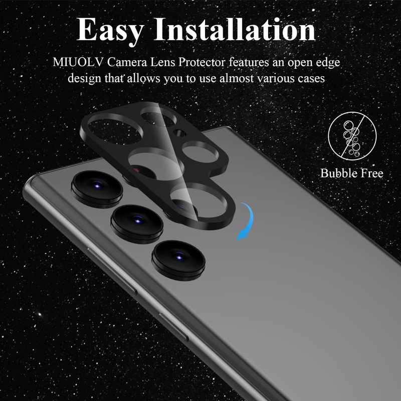 ?Case Friendly Easy Installation?MIUOLV Camera Lens Protector features an open edge design that allows you to use almost various cases. So you can put on your phone case without being affected. This camera lens protector is perfect for Galaxy S22 Ultra 5G and very easy to install. Remove the dust before installation, and then directly align the lens protector with the hole to install on the camera lens, then press gently and it's done.