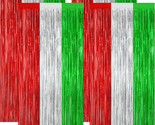 4 Pack Christmas Curtains, 3.28 FT X 7.05 FT Red Silver Green Foil Backdrop, Metallic Foil Fringe Curtains Party Streamer Picture Backdrop, Christmas Door Decorations Photo Props Party Supplies