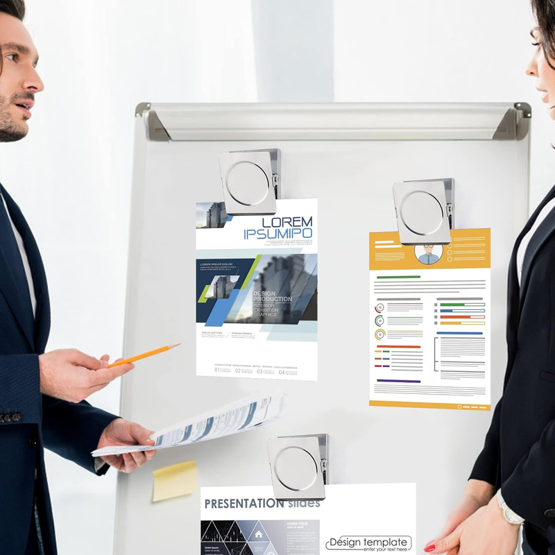 ??Strong Magnet Clips?: Magnet clip width: 2.2 inch ( 56 mm), length 2.6 inch ( 66 mm), magnet clips weight: 3.68oz per clips. The magnetic force of this heavy-duty magnetic clip is much stronger than the ordinary magnetic clip on the market. The square shape conforms to ergonomics. It is very easy to press and has extremely strong grip. It can not only be used to clamp paper items, but also large packaging bags!