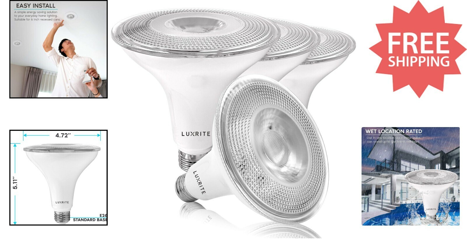 - 4 Pack Dimmable LED Flood Light Bulbs - 15W, Listed, Indoor/Outdoor
