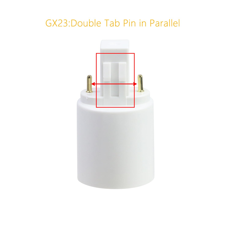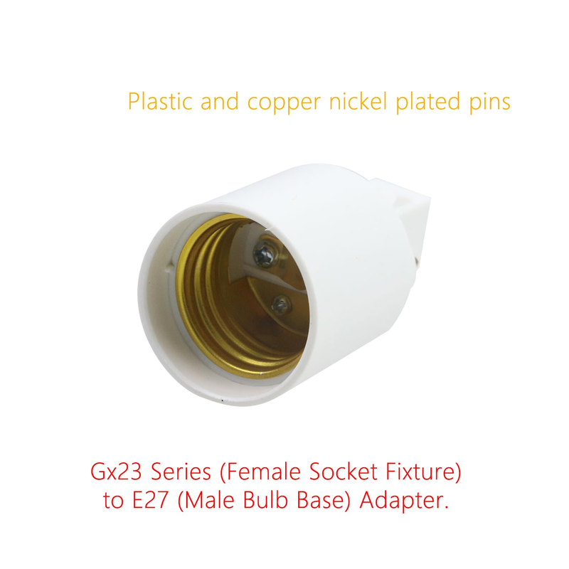 FUNCTIONAL STRUCTURE---The GX23 (2-Pin) lamp tube is transformed into a standard E27 screw-type lamp base to solve the problem of incompatible interfaces. It is made of flame-retardant plastic shell and copper-nickel plated Pin pins, which are conductive and durable.