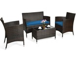 - 4 Piece Comfortable Outdoor Rattan Sofa Set with Glass Coffee Table