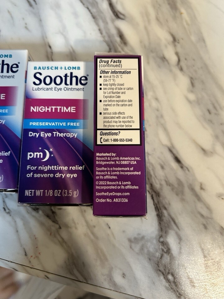 - 4 Pk Bausch + Lomb Soothe Nighttime Dry Eye Therapy 1/8oz Ea Exp: 2028+