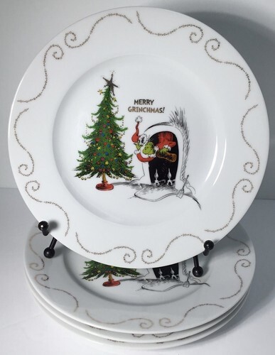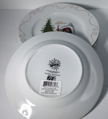- 4 Salad/Accent Plates Dr. Seuss How The Grinch Stole Christmas & Cindy Lou New