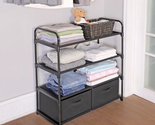 - 4 Shelf Closet Organizer with 2 Bins, Black, Metal Frame, Adult and Child