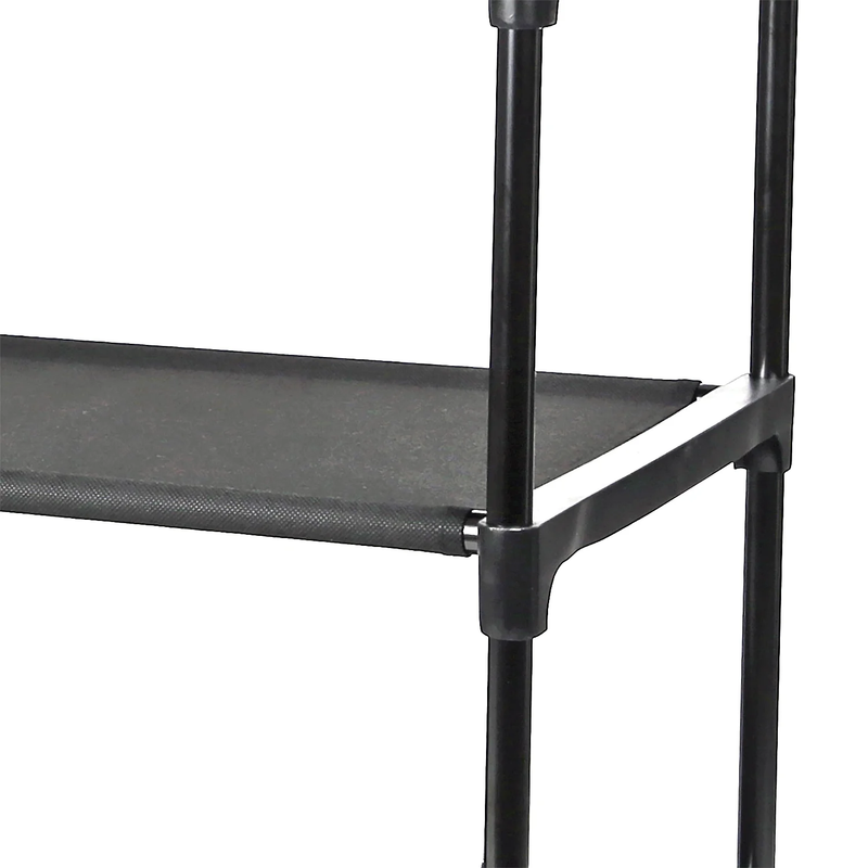 4 Shelf Closet Organizer with 2 Bins, Black, Metal Frame, Adult and Child