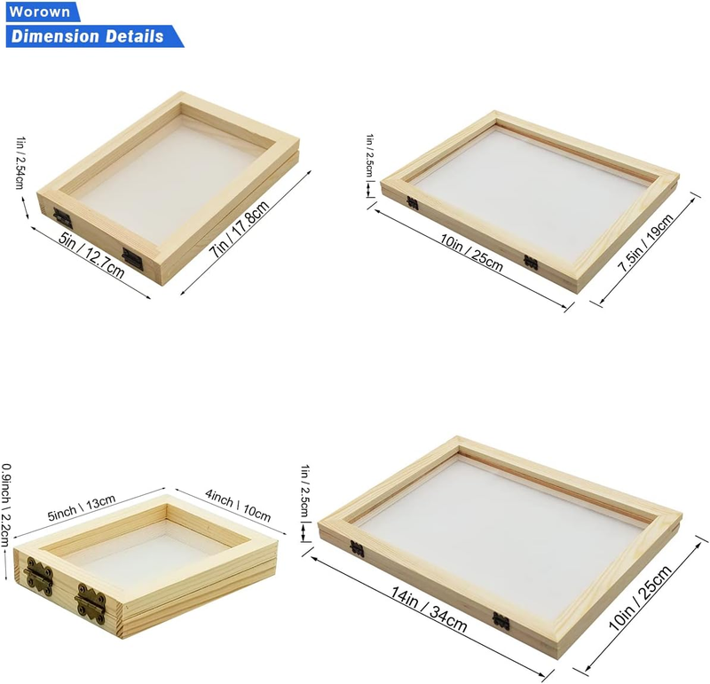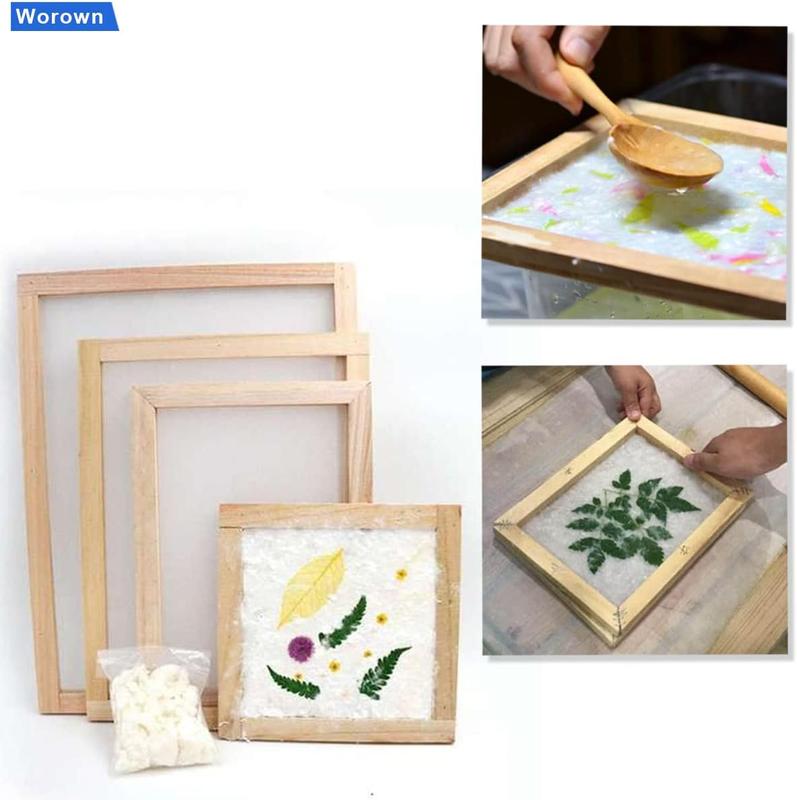 4 Sizes (A4, A5, A6 A7) 2 in 1 Wooden Paper Making Screen, Mould and D