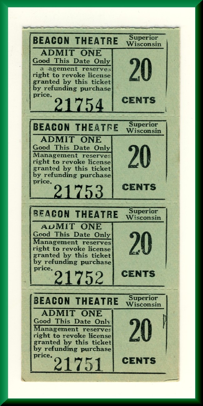 - 4 Vintage BeaconTheatre Tickets, Superior, Wisconsin/WI 1950's?