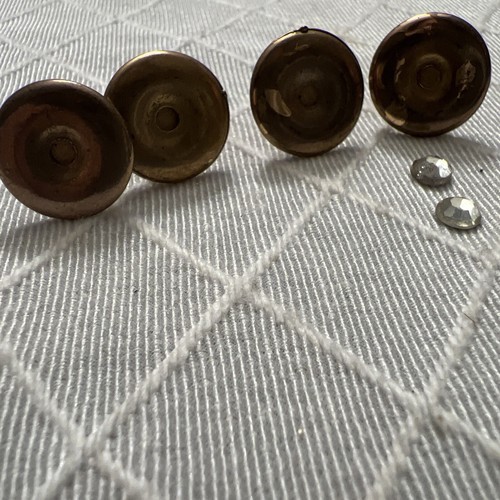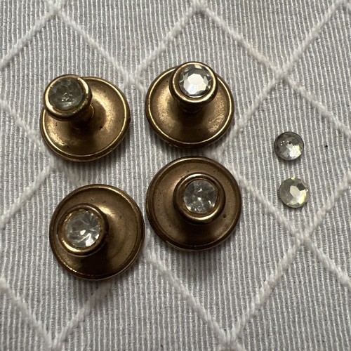 4 Vintage Men's Rhinestone Shirt Cuff links Studs Brass Metal Extra Rhinestones