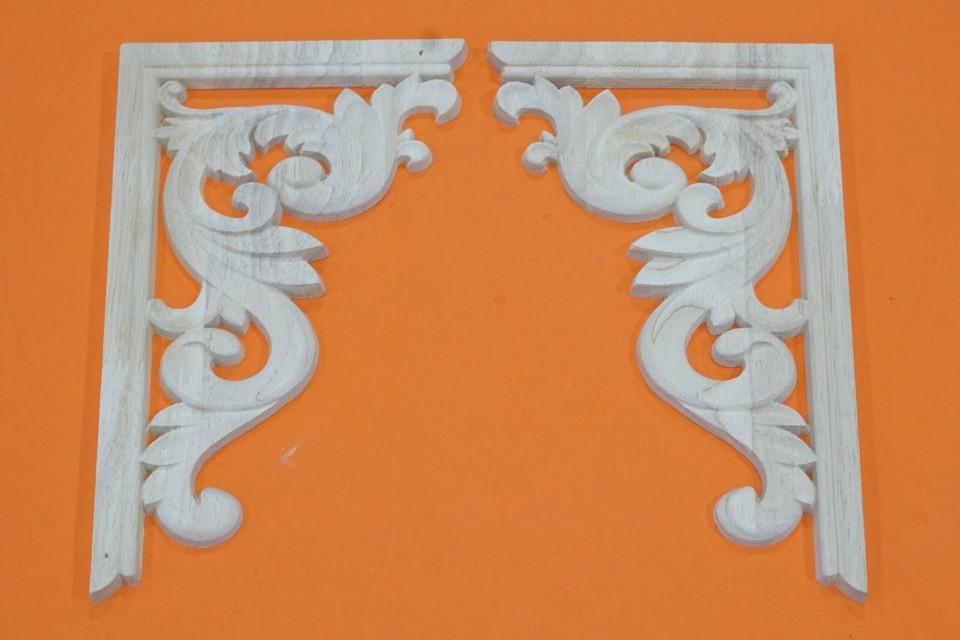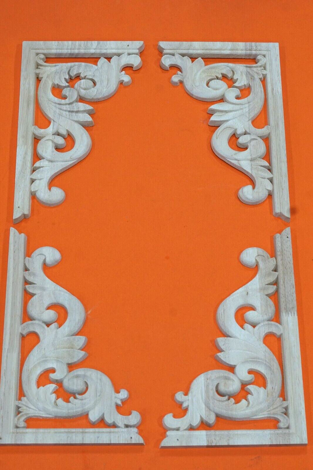 - 4 Wood Carved Corner Onlay Applique Frame Moulding Molding Shelf Wall Trim 4 PCS