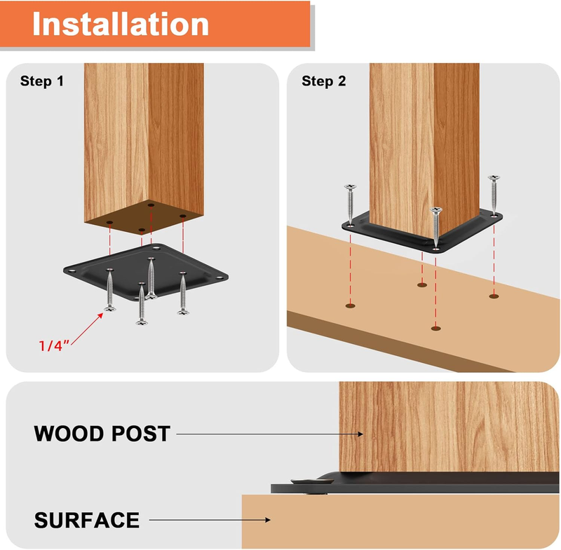 High Quality: Those Wood Fence Post Anchor Base are made of steel. The post base is powder-coated steel, which has great rustproof and waterproof performance