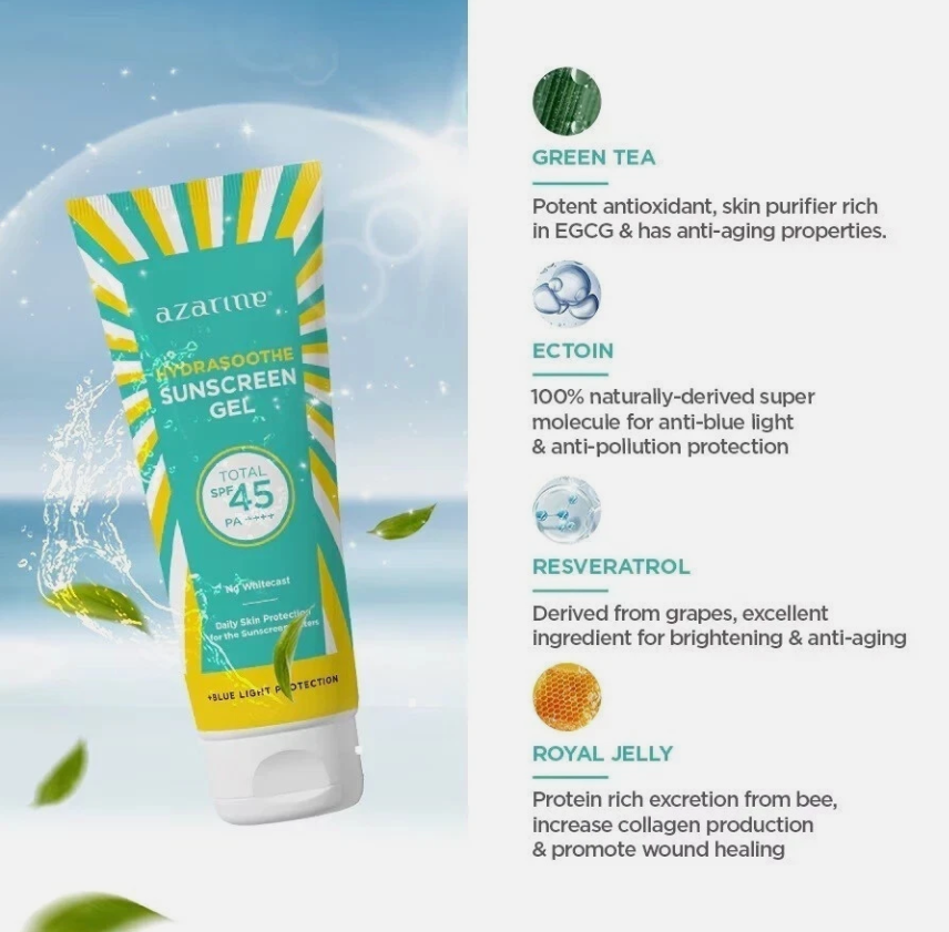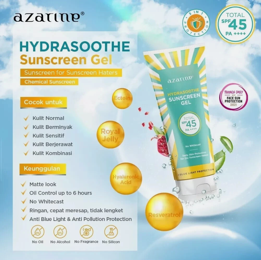 Azarine Hydrasoothe Sunscreen Gel is suitable for all skin types from normal, dry, oily, to acne prone skin