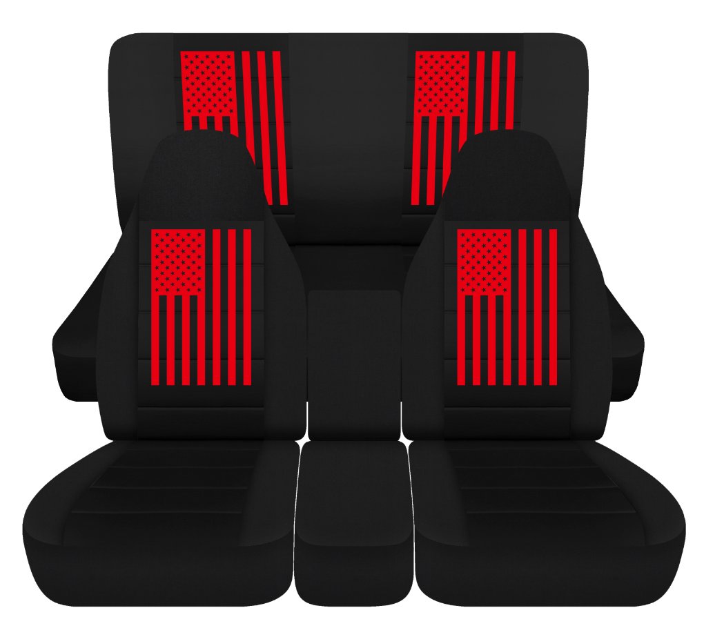 - 40-20-40 Front and Solid Rear seat covers fits 1999 gmc 6500 topkick blk W/flag