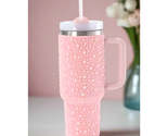 - 40 oz Pink Pearl Studded Stainless Steel Tumbler with Handle