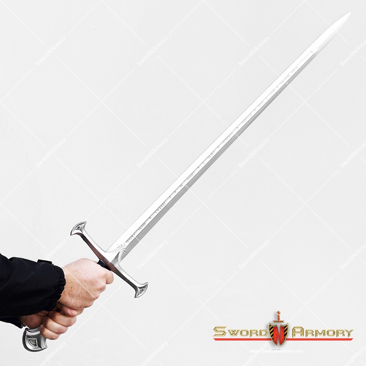 Forged from the ancient sword Narsil, and named Flame of the West by Aragorn the returning King of Gondor, Anduril is an heirloom blade with the legacy of entire nations resting on its crossguard. It is destined to restore the kingdoms of Men to their former glory. Now, you can also take up this storied blade, with this faithfully designed prop replica!