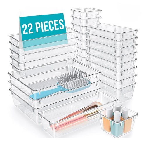 This organizer set includes 44 storage bins in four practical sizes, allowing you to create custom layouts for any drawer.