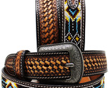 - 45-46 Unisex 1.5" Western Floral Tooled Beaded Full-Grain Leather Belt 26RT30A