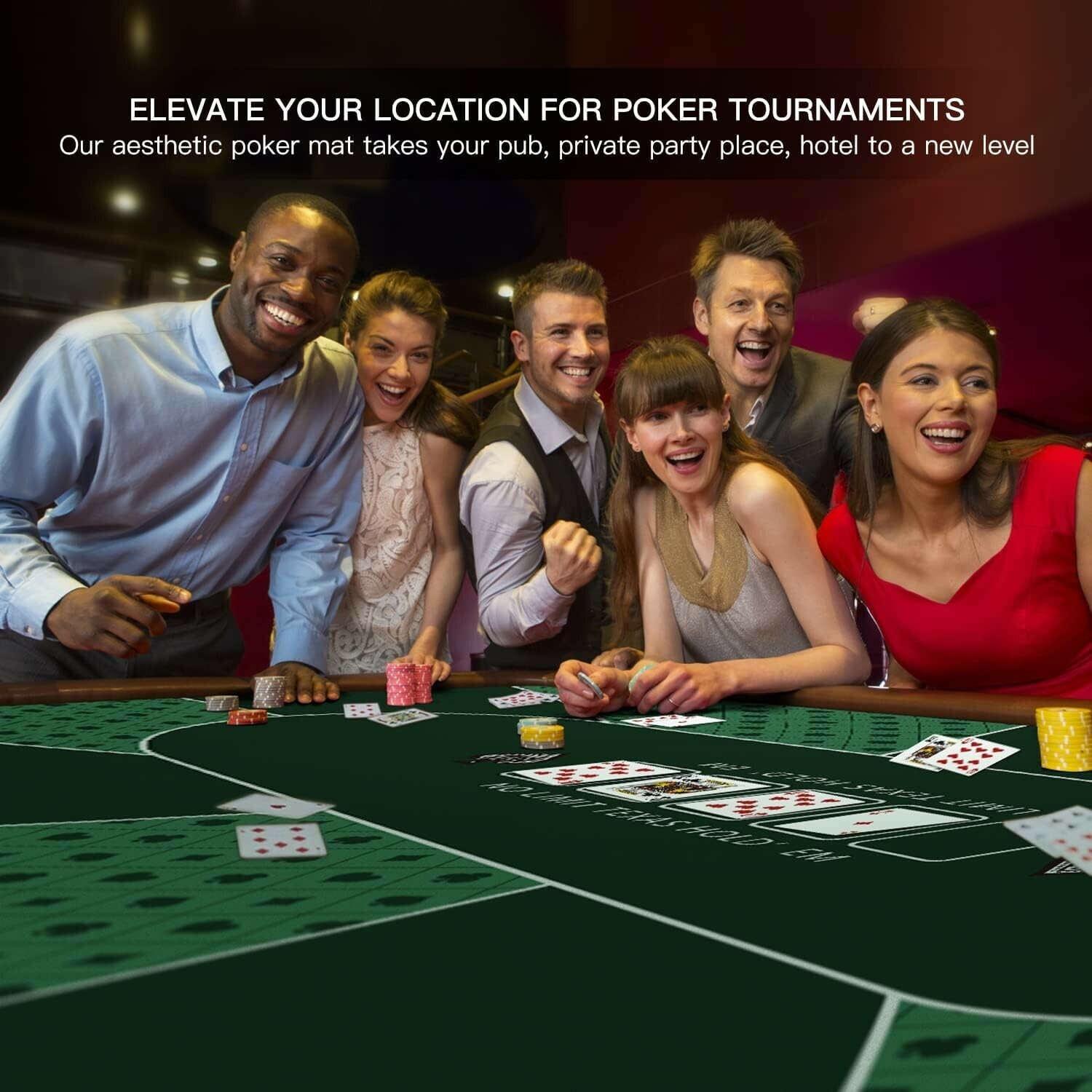 - 47x23 Inch Non-Slip Poker Mat for 6 Players - Perfect for Texas Hold'em Games