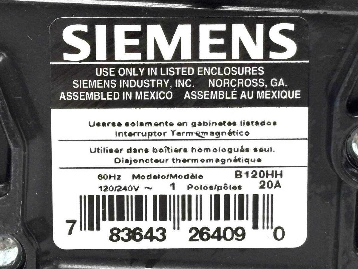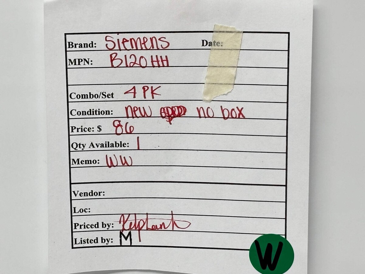 4PK Siemens B120HH 20 A 1?Pole 120 / 240 V Bolt?On Molded Case Breaker New No Box The Siemens B120HH is a 1?pole, 20 amp circuit breaker rated for 120/240 VAC with a high interrupting capacity of 65 kA. It features a bolt?on mounting style, thermal/magnetic trip unit, and is part of the BL Series type HBL frame for panelboard applications. It supports wire sizes down to 14 AWG copper or 12 AWG aluminum and is UL?listed for electrical distribution use. Listed by: Maksim (Sales Team) ?Self-discipline is doing what?s right instead of doing what you feel like doing. That?s the meaning of self-disciple.?~ Eliud Kipchoge (A positive moment brought to you by Help Resale) About Us Welcome to Help Resale, your go-to consignment shop where value meets quality. At Help Resale, we're dedicated to providing you with an exceptional shopping experience, whether you're looking to find the best deals or consign your items. Need to buy a product, but don't see it in our store? Please feel free to reach out to us and we will help you find it! Help Resale 7200 Fair Oaks Blvd Suite 120 Carmichael CA 95608 Business Hours: Monday-Friday: 9:00 am to 5:00 pm (PST) All product and company names are trademarks TM or registered trademarks of their respective holders. Use of them does not imply any affiliation with or endorsement by them.
