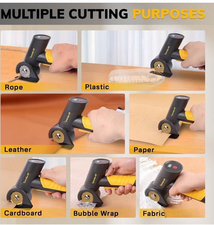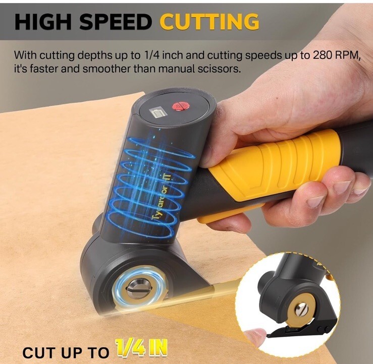 The 4V Cardboard Cutter Electric is a high-speed, rechargeable electric box cutter made with an aluminum blade. This handy tool, weighing 1.52 pounds and measuring 9.33x6.38x3.43 inches, efficiently cuts through boxes and cardboard with ease. The included components are a single electric cardboard cutter, making it a convenient and reliable addition to your home or office for various cutting needs.