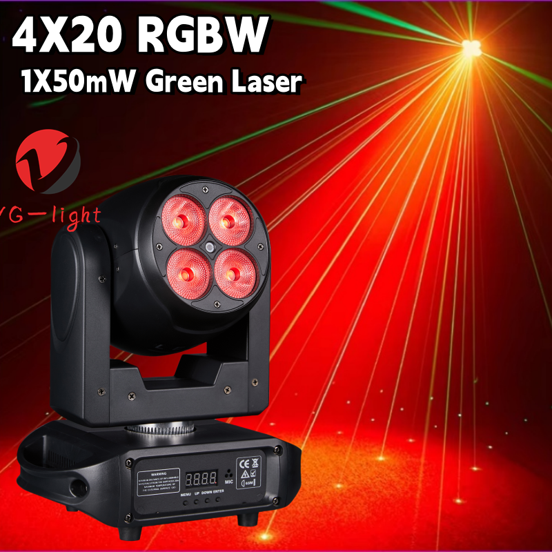 - 4X20W RGBW LED Moving Head Stage Light DMX Beam Laser Wash DJ Disco Lights