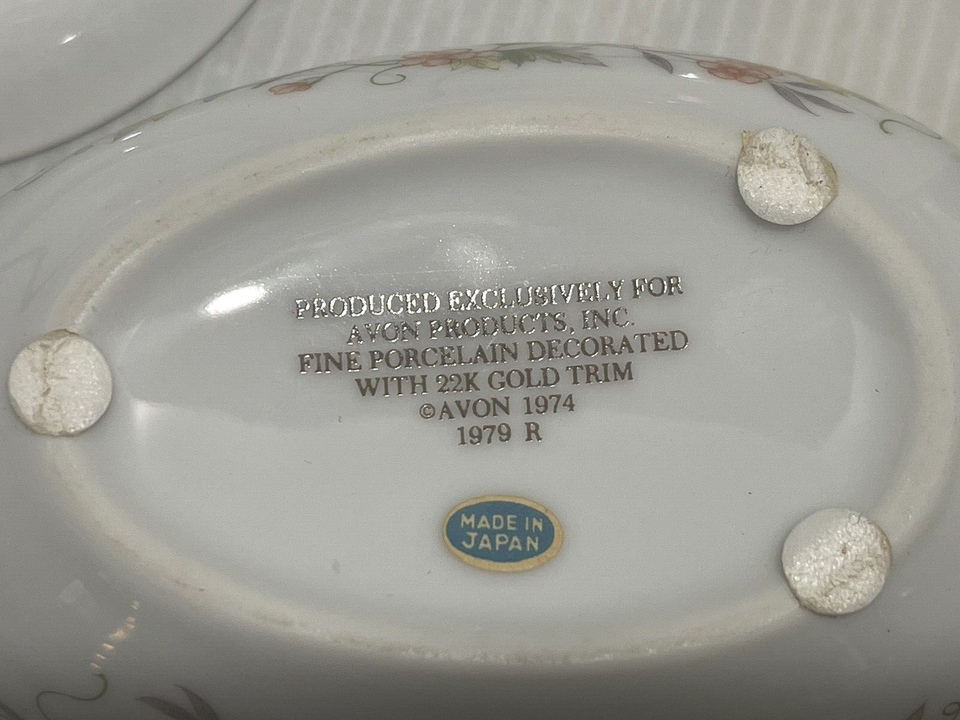 - 4pc Avon Butterfly Fine Porcelain 2pc Saucer 1 Lg Egg and Fan Jewelry Dishes