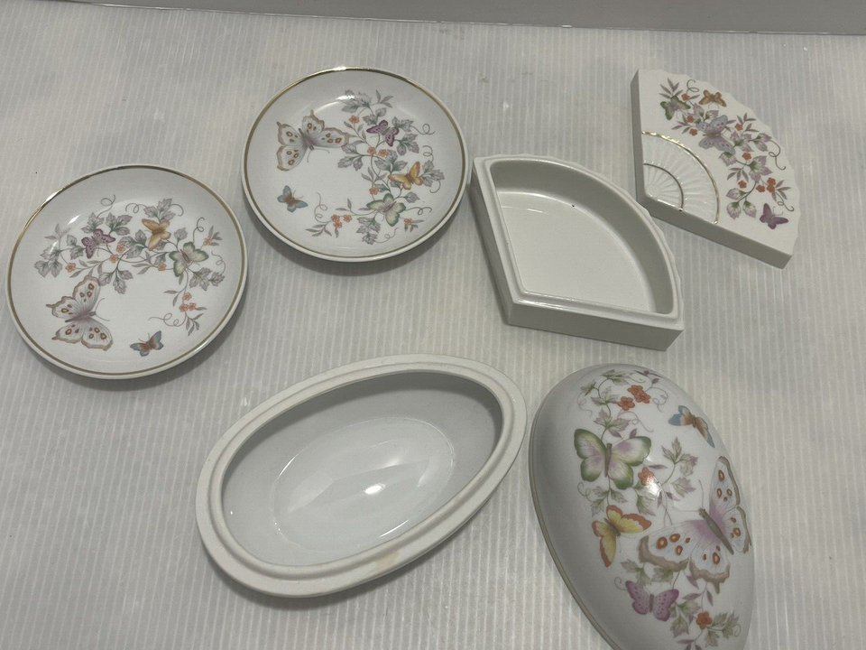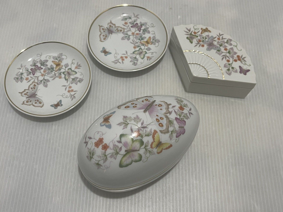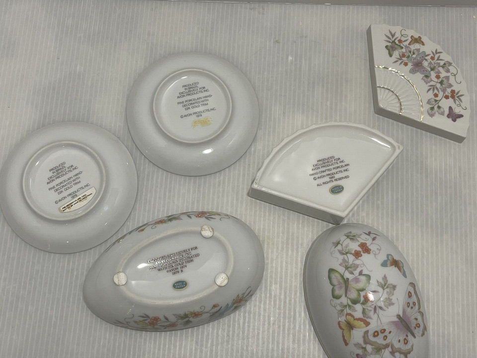 4pc Avon Butterfly Fine Porcelain 2pc Saucer 1 Lg Egg and Fan Jewelry Dishes