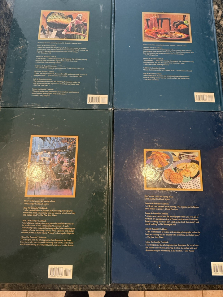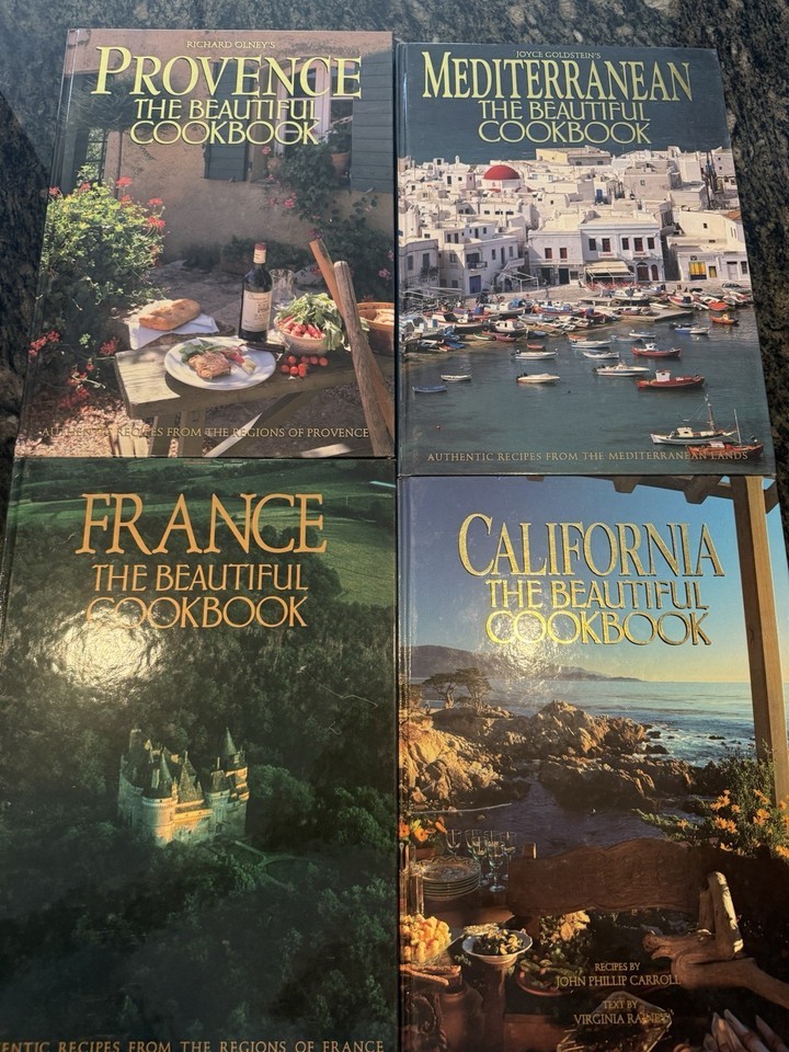 4pc Cookbook all hardcover- Authentic Recipes from the Regions of France, Provence, Mediterranean and California the beautiful cookbook by John Phillip Carroll
