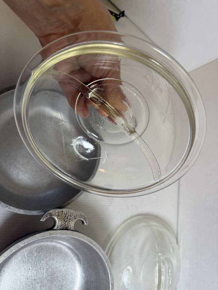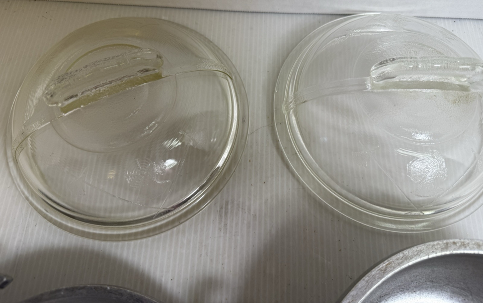 “It's in good condition and needs cleaning. No chips on glass lids” |
