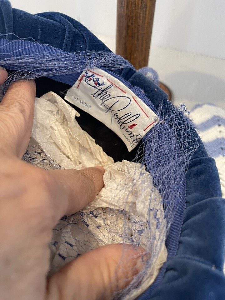 The Robbins Blue velvet with knitting marked, St. Louis Clayton