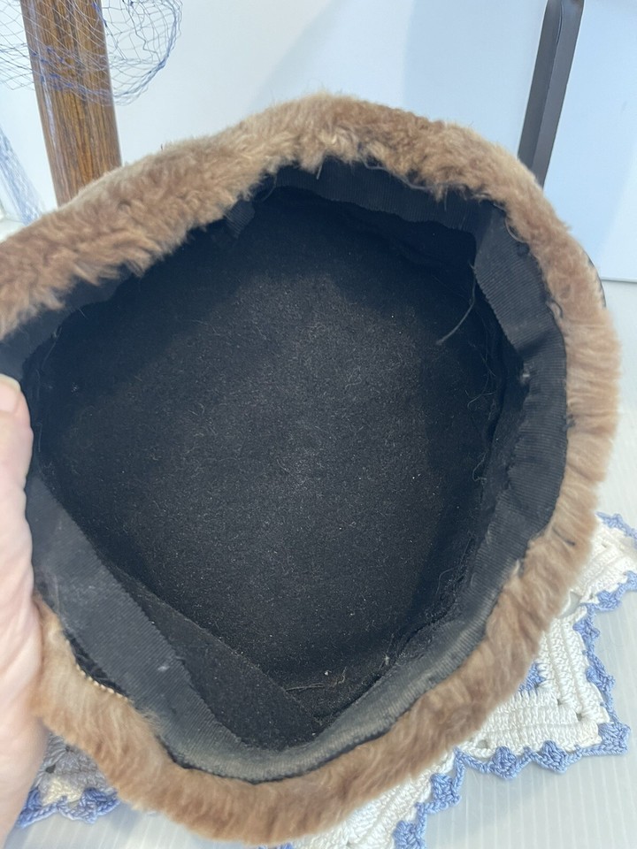 Brown Faux Fur Pillbox Hat, Lining is a loos