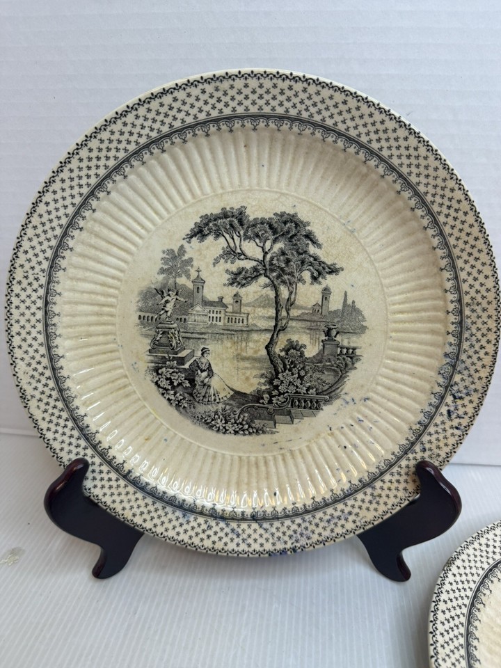 - 4pc Wm Adams & Sons England Minuet 10" Dinner Plate