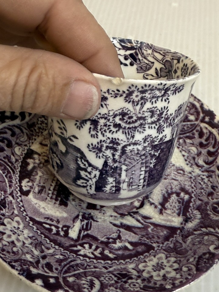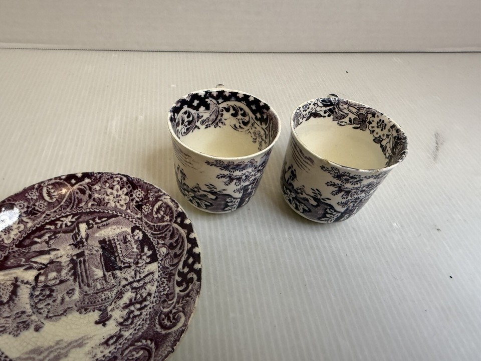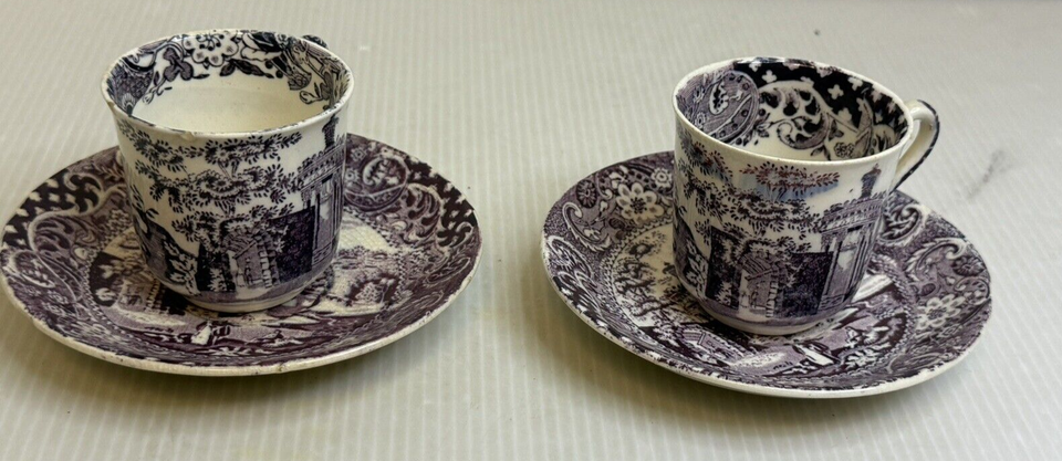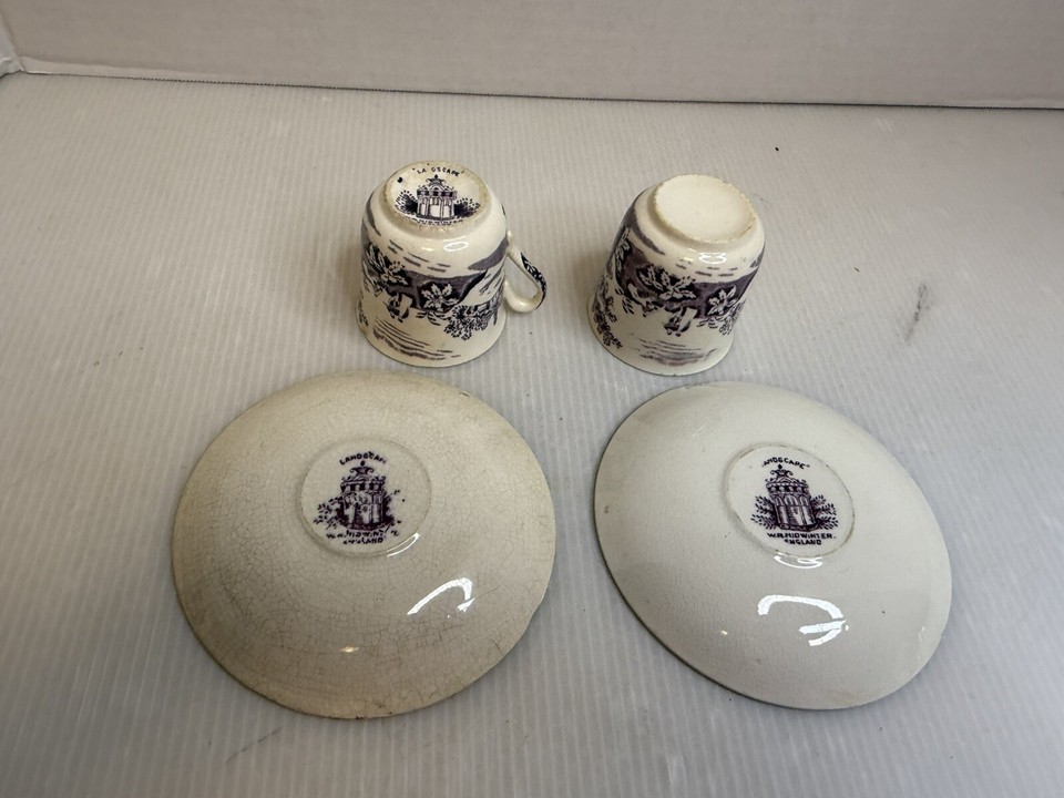 - 4pc set Vintage W R Midwinter "Landscape" Purple Marked, from England Tea Cups