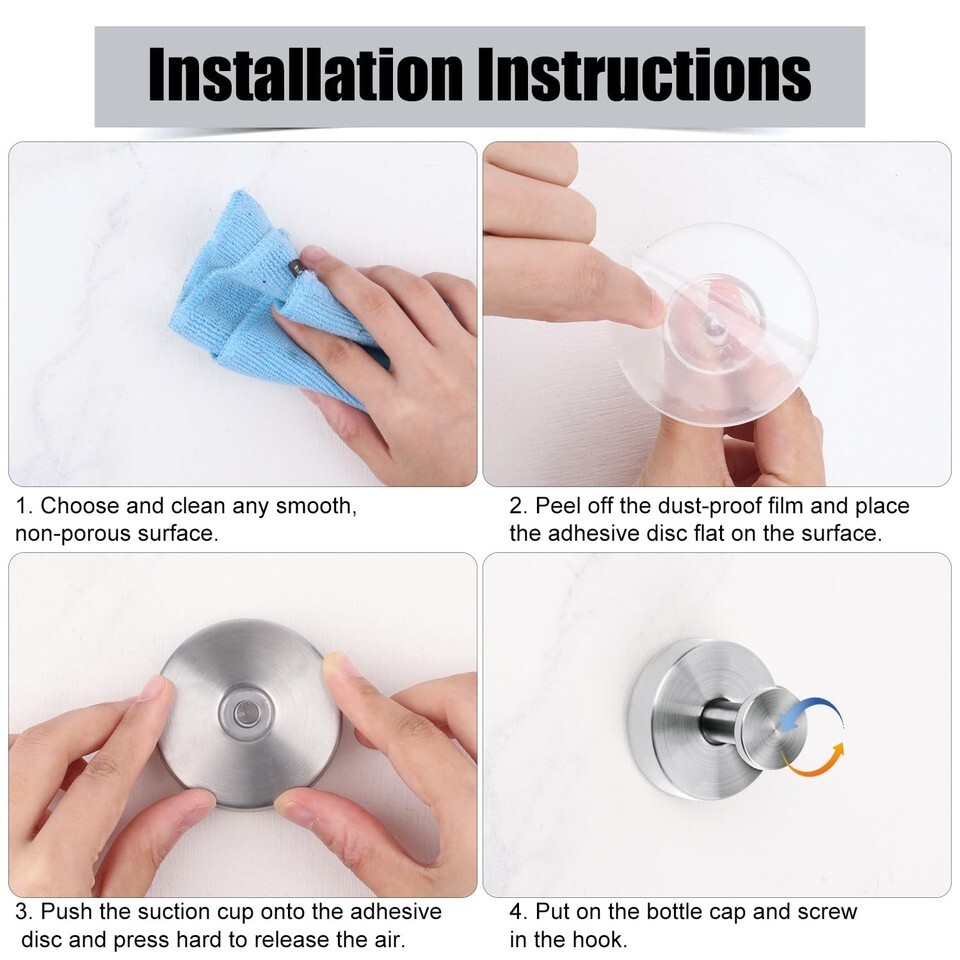 - 4pcs Suction Cup Hooks Stainless Steel Wall Hooks for Bathroom Glass
